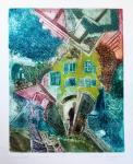 Közülük is kiemelkedik mozgalmasan vibráló, sajátosan összetett, egyedi formavilágával, kompozíciós erényeivel Kőmíves Andor Lenni vagy nem lenni-je és a vele harmonizáló Forró Ágnes-féle Fekete utcai emlékezetfoszlány. Formavilágának nemes eleganciájával tűnik ki Nagy Endre Shakespeare adaptációja, míg Sipos László a maga összetéveszthetetlen stílusában állít maradandó Oltárképet Kolozsvárnak. És Kolozsvár ihletésű Horváth Gyöngyvér sajátos, kollografikus emlékeztetője, az egymást metsző síkokkal érzékeltetett emlékképekből összeálló, ötletesen kivitelezett Elfelejtett utca, amivel formailag összecseng Kozma Rozália A sors dossziéja című tempera munkája. Bordy Margit körkörösen áramló, ezoterikus hangvételű, formailag letisztult, mély zengésű, az erdélyi pasztellhagyományokat modern köntösben felvillantó, igényes művészi megfogalmazása egy másik dimenzióba enged bepillantást, míg Gally A. Katalin magasságokat megcélzó, felfelé ívelő Igyekvéssel fogalmazza pasztellbe érzelmeit, a rá jellemző, éppen visszafogottságában megkapó kifejezőerővel, mívességgel. Balló Andrea sejtelmesen suttogó színekkel és sokat ígérő tömörséggel érzékelteti olajban a Kizökkent időt, s Az idő sodrában alkot sajátos színharmóniákat felvonultatva Gonda Zoltán. A Koncz-Münich házaspár pedig ezúttal is kitett magáért. András mély értelmű, lényegre törő, nemesen egyszerű, Kőbe zárt múltú kerámiáival, míg Judit kiemelkedően ötletes, telitalálatnak minősíthető tartalmi, formai bravúrjával. S nem hagyhatjuk szó nélkül Gedeon Zoltán Háborúban hallgatnak a múzsák című találó szín- és formajátékát, Hornyák Evelin aprócska, de annál kifejezőbb akril munkáját, Petca Ovidiu látványos számítógépes grafikáit és Keszthelyi György hasonló technikával készült alkotásait, Lendvai Péter Időárnyék című, mély értelmű, sötéten nemeslő szitanyomatát, Katona György míves Időlenyomatait, M. Lovász Noémi Áthatások című, tömören kifejező, modern festői megfogalmazását, Vízi Katalin látványos, konstruktivista formavariációt, Gyurkovics Hunor Feltámadás című akvarelljét, Tompos Opra Ágota figyelemfelkeltő, dinamikus szín-forgatagát, Fejes Soma Bogát sajátos aqua grafikáját. A fiatal anyaországi művész munkájával egyébként Sepsiszentgyörgyön, a negyvenegy ország grafikusainak részvételével megnyílt, nagyszabású Székelyföldi Grafikai Biennálén is találkoztam, akárcsak az EMME-tárlatokról elmaradhatatlan Ábrahám Jakab rézkarcaival. Rézkarcokkal remekel ezúttal is Székely Géza, Fátyol Zoltán, Tamus István és Lőrincz Róbert, s a 2013-ban elhunyt Feszt László grafikáját is megtekinthetjük. Kandinszkijra emlékeztet triptichonjával Drozsnik István, s az áthatások sajátos változataival találkozunk Durucsko Zsolt, Éles Bulcsú, Boros György, Subicz István, Kentelki Gábor, Láng Eszter, Molnár Imre művészi megjelenítéseit szemlélve. Essig K. Klára és Pócsai András valósághű, kolozsvári ihletésű munkái mellett, Kocsis Ildikó, Boár Szilvia, Vitos Hajnal, Tóth Ildikó Ilona, Gárdonyi Sándor s a szobrász Kovács Géza és Hunyadi László alkotásai sem hiányoznak a tárlatról. Amelyre a koronát Tudoran Klára Lívia textilmunkái teszik fel tartalmi mélységükkel, megkapó színvilágukkal, harmonikusan összecsengő, egyedi formavariációikkal.