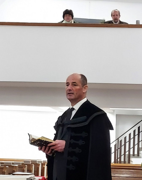 Bár soha ilyen közel nem laktak az emberek egymáshoz, hiszen egy tömbházban az egyik padlója a másik plafonja, lelkileg mégis nagy távolság van köztük. A lelkipásztor arra hívta fel a figyelmet: amennyire visszatalálunk Istenhez, annyira találunk majd vissza egymáshoz. „Egy hónapja éltük meg a csodát karácsonykor: velünk az Isten.” Ő nemcsak az ünnepen, hanem a hétköznapokban is kísérni akar, valóságosan velünk marad – fejezte be beszédét a házigazda lelkipásztor. A közös ima és ének után a közösségi teremben kiállításmegnyitóval folytatódott az ünnepi alkalom.