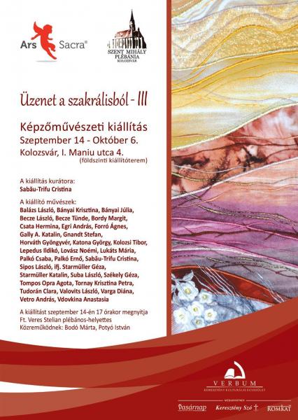 A kiállítást, amelynek kurátora Sabău-Trifu Cristina egyházművész, Veres Stelian plébános-helyettes nyitja meg szeptember 14-én, szombaton 17 órakor. Közreműködik: Bodó Márta teológus, a Keresztény Szó katolikus kulturális folyóirat főszerkesztője és Potyó István, a Szent Mihály-templom kántor-karnagya, zenetanár.