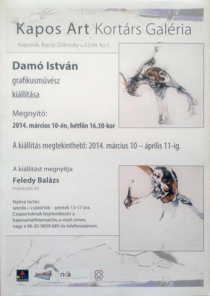 Úgy gondolom és ez a privát véleményem Damó Istvánról sokkal könnyebb lenne írni, ha a mesekönyv-illusztrációit állították volna ki a Kapos Art Kisgalériában (Kaposvár, Bajcsy Zs. u. 32-34). A megnyitón az egyesület titkára utalt rá, hogy arra is sort kerítenek majd.