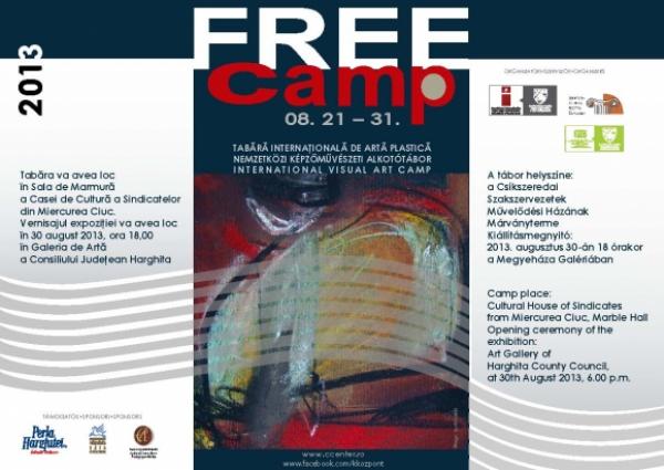 Kilencedik alkalommal kerül sor a FREE Camp Nemzetközi Képzőművészeti Alkotótáborra Csíkszeredában 2013. augusztus 21-31. között, a Szakszervezetek Művelődési Házában. A tábor, ahogy a neve is tükrözi, tematikailag és műfajilag teljes alkotói szabadságot biztosít a résztvevő művészeknek, ugyanakkor az érdeklődő és kíváncsiskodó számára megadja az alkotói munkába való betekintési szabadságot.