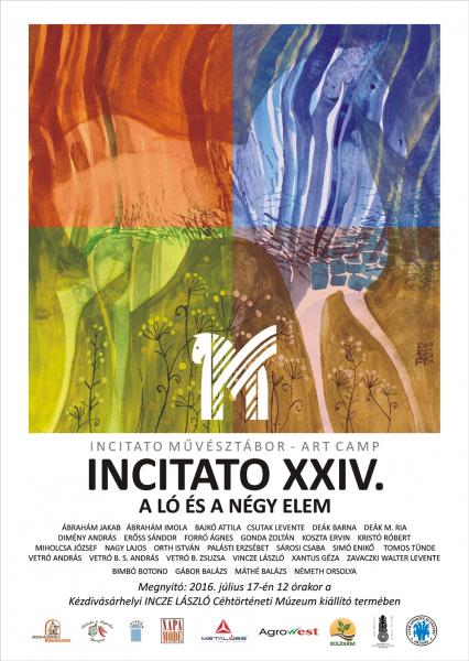 Az idei téma különleges és összetett. A ló és a négy elem. Külön-külön ábrázolva gyakran találkozhatunk ezekkel a témákkal a képzőművészetben, de így együtt egymás mellé, párhuzamba állítva ritkán vagy egyáltalán nem. A művészeti ágakban a négy őselem szimbólumokként jelenik meg. A tűz a szenvedély, az életerő, a megtisztulás, ugyanakkor a bűnhődés jelképe, teremtő és démoni egyszerre. A víz hasonlóképpen kettős polaritású: megsemmisítő és alkotó erő, elválasztó és egyesítő princípium. A levegő a tűzzel együtt az aktív, szellemi, maszkulin pólusként a földi és égi kapcsolat megteremtője, kozmikus kapcsolatok hordozója. A föld a levegő ellentétpárjaként pedig a női princípium, az egyetemes anya, a termékenység archetípusa, a levegő mint szellemi léthordozóval szemben az anyagi lét megtestesítője. A 24. Incitato tábor résztvevői egy „ötödik elemmel”, a ló alakjával gazdagították, értelmezték újra a témát. És, ahogyan Bartha Zonga múzeumpedagógus is fogalmazott tárlat kézdivásárhelyi megnyitóján: a lóéval, amely ősidők óta megjelenik a képzőművészetben, és amelyet gyakran pontosan a fénnyel, a tűzzel, a vízzel, az anyaistenség, a föld gondolatával, illetve szárnyasan, a levegővel hoztak összefüggésbe. Alakjában tehát egyszerre koncentrálódik a négy ősmatéria, belőle magából épül fel a mindenség, jön lendületbe a körforgás.