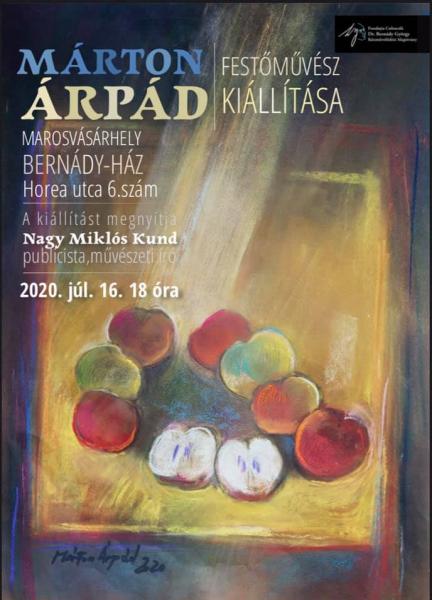 Több mint négy hónapos kényszerszünet után újra tárlatnyitó lesz a Bernády Házban. Július 16-án, csütörtökön 18 órakor Márton Árpád csíkszeredai festőművész pasztell kiállítása kerül közönség elé. A 80. életévét októberben töltő alkotó áprilisra tervezett vásárhelyi bemutatkozása a járvány miatt elmaradt, most remélhetőleg nem szól közbe a pandémia. A megnyitó az előírások szerint (maszk, távolságtartás, lázmérés stb.) zajlik majd a kulturális központ udvarán. A festő utóbbi alkotói időszakában született és Lélekkapu címmel egybegyűjtött negyven alkotása művészetének minden erényét, tematikai, érzelmi gazdagságát, üzenethordozó erejét felmutatja. A műveket és a vendég pályáját, festészetének értékeit a megnyitón Nagy Miklós Kund művészeti író méltatja.