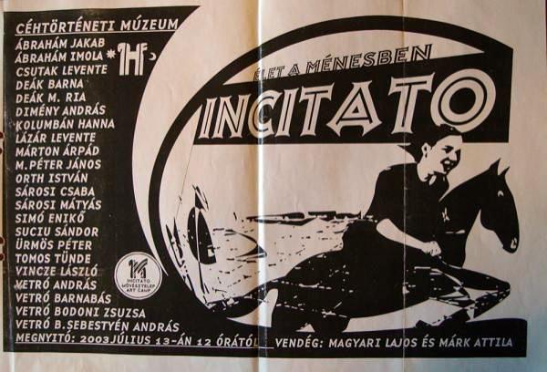 A kiállítás megnyítón a húsz művész körül tolonganak Kézdivásárhely és környékének aprjaból-nagyjából legalabb százan. Rekviemet állnak egy ménesért... – És láss csodát, még sem sikeredik siratónak, lótemetésnek a tárlatnyító összejövetel. Ezek az emberek ez után is együtt fognak élni a nagybetűs Lóval, az Incitató szellemével, amely tizenegy év alatt esztendőnként átlag huszonvalahány művészt hozott össze ebbe a fortyogófürdői alkotókarámba.