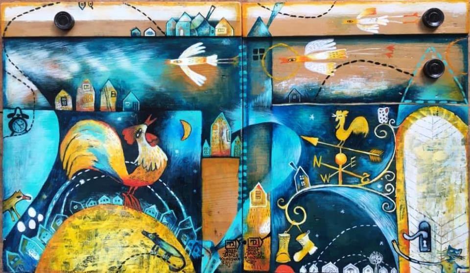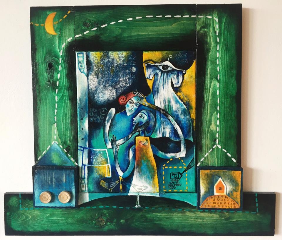 sokszor szabálytalan alakú falemezekre festek, amelyeket kedvem szerint